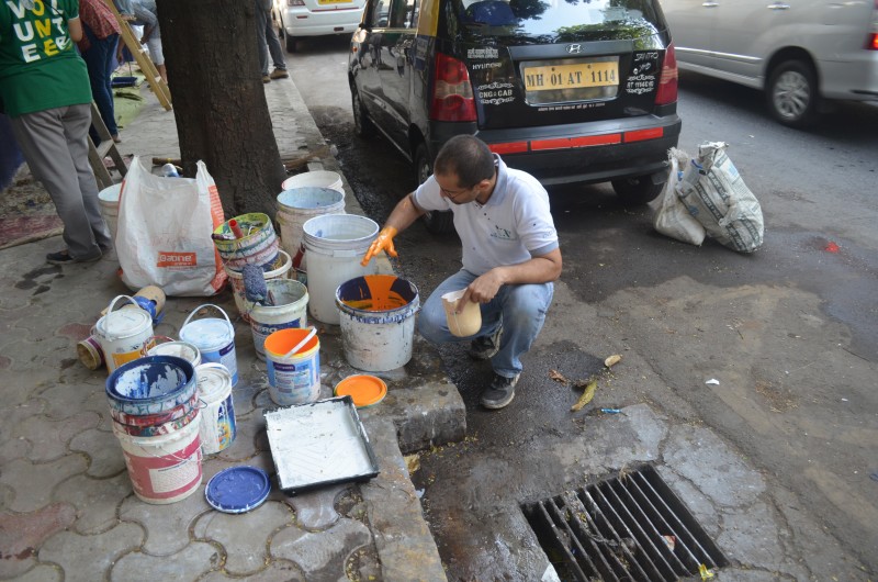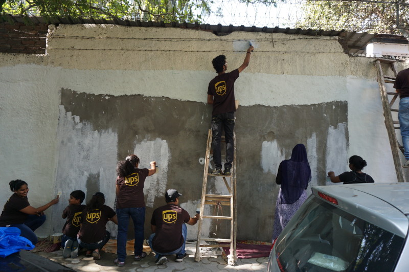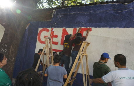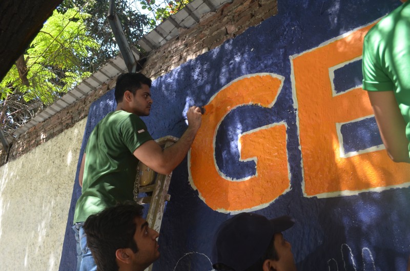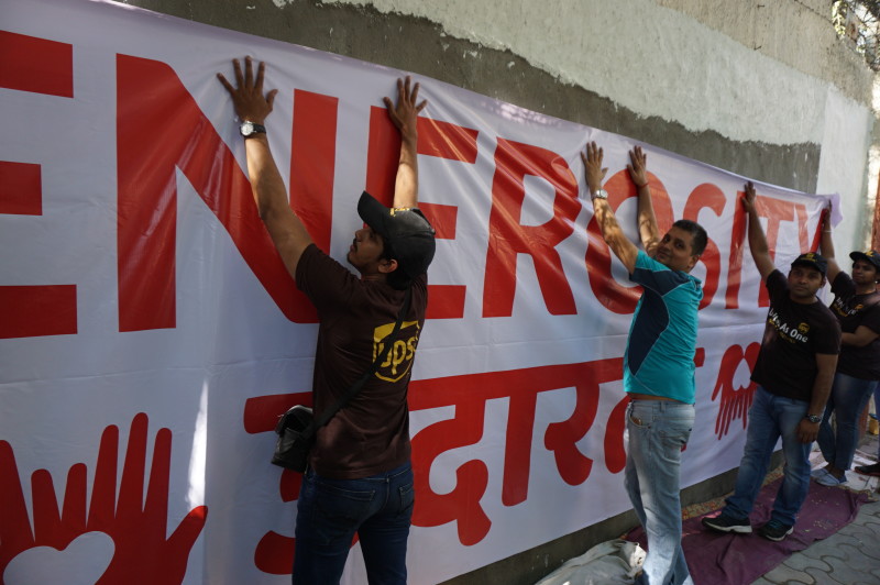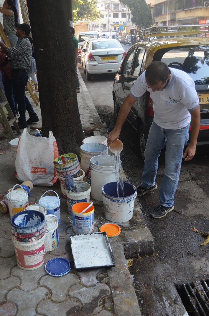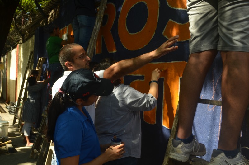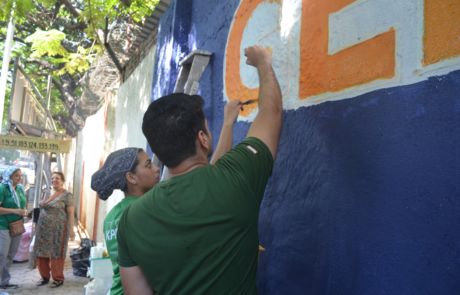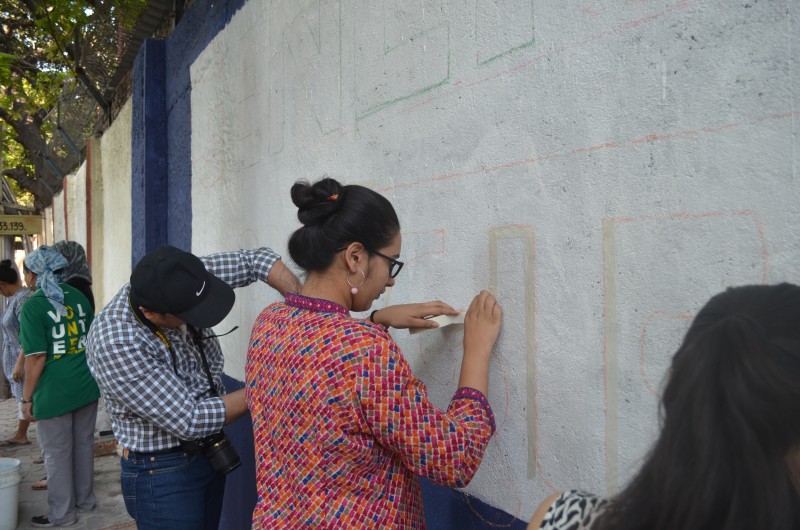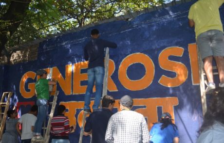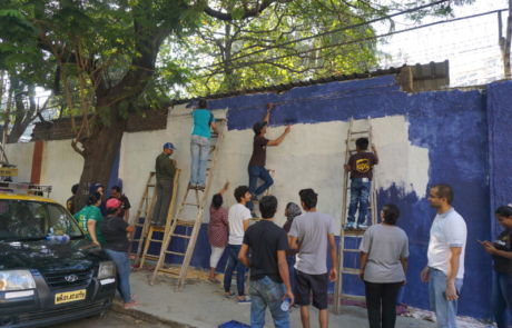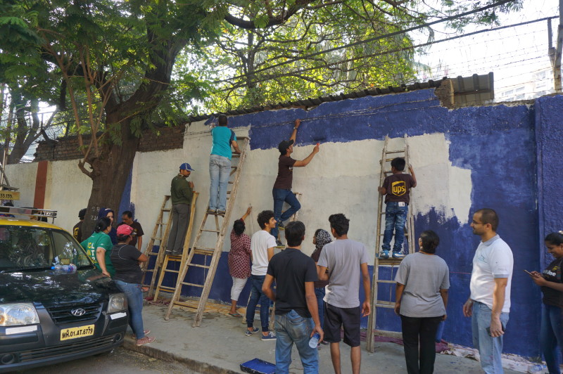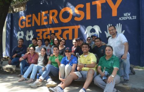 A group of over 40 volunteers comprising of members of New Acropolis (Mumbai),and volunteers from UPS and KPMG spent the sunny weekend of 18th and 19th February 2017 beautifying a public wall in Colaba. Volunteers plastered, whitewashed and painted this wall with the inspiring message of “Generosity” in English and its equivalent “Udarta” in Hindi / Marathi.