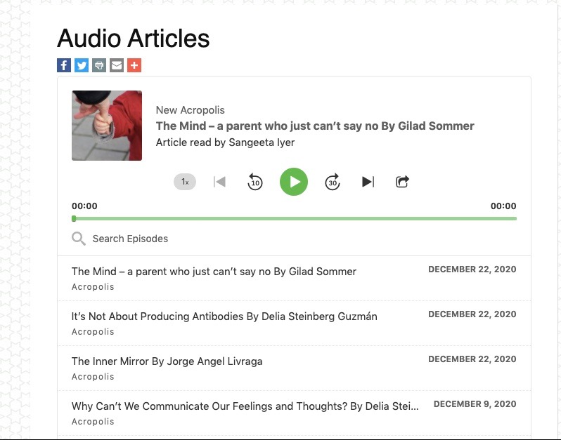 In an initiative to make the New Acropolis English Library more accessible, we have added a new feature for Audio Articles. These are audio recordings of our articles for your easy listening. We already have 23 recordings that you can access with more to be added in the coming days.