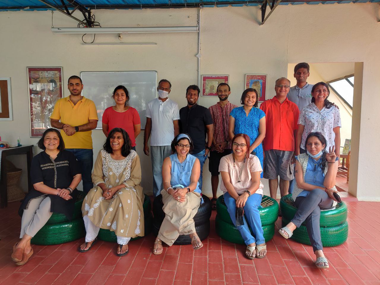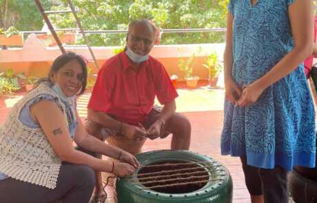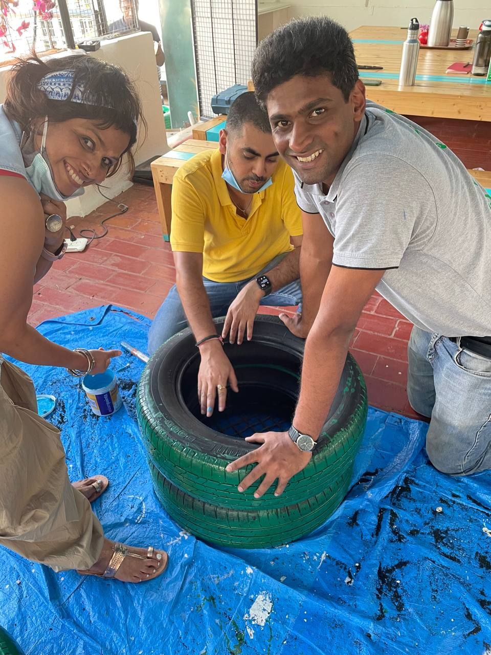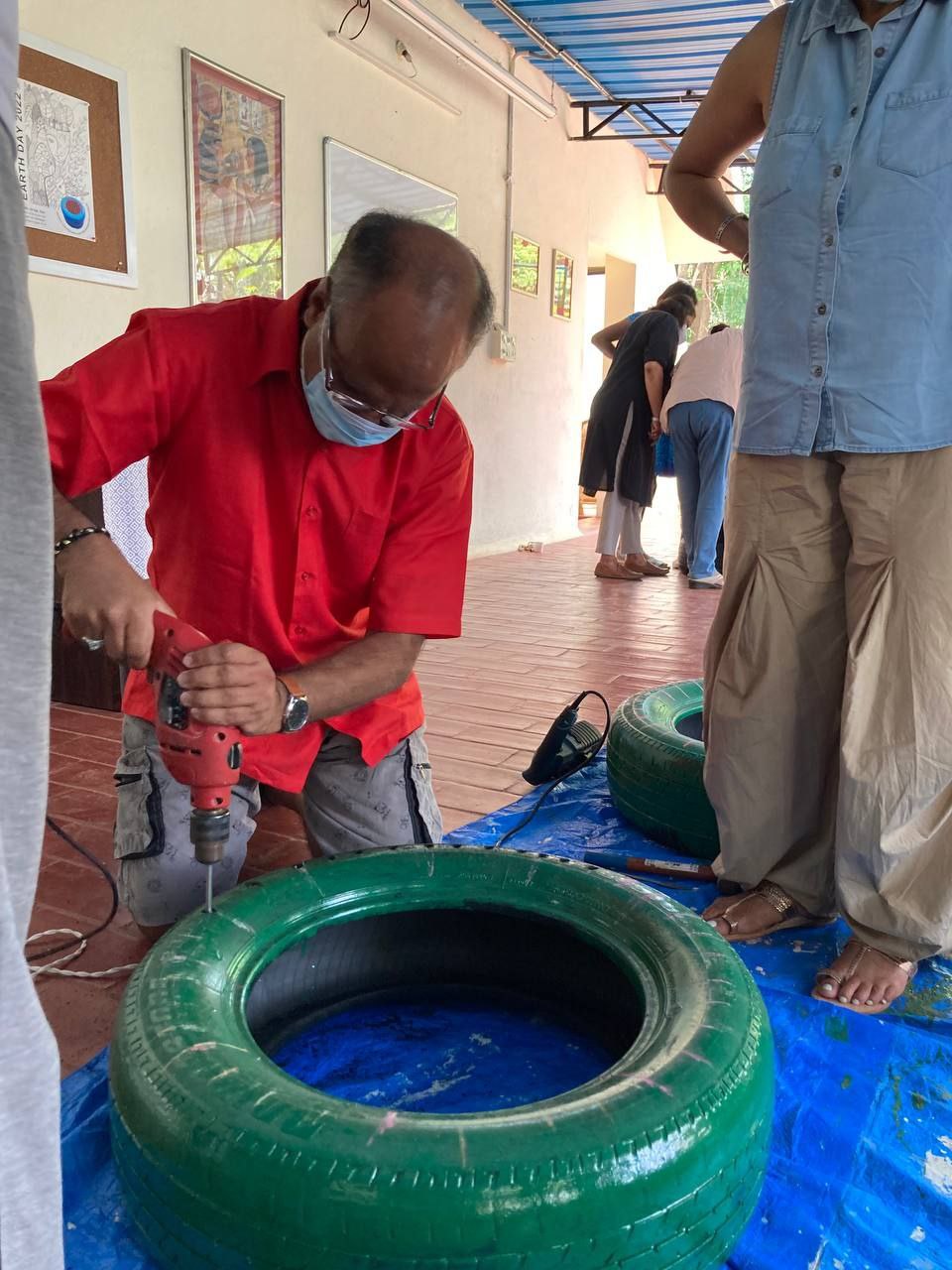 Our philosophical journey found another expression when members & volunteers of New Acropolis India South came together on a beautiful Sunday morning to give new life to used car tyres by upcycling them into seats.