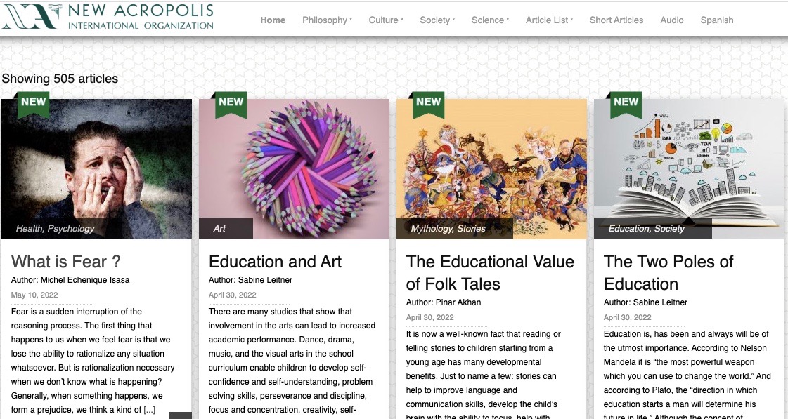 The New Acropolis English Library recently crossed a milestone of completing 500 articles, covering a host of topics such as Philosophy, Mythology, Culture, Society, Science, Psychology and many more. All articles are written by fellow philosopher volunteers from New Acropolis member countries around the world.