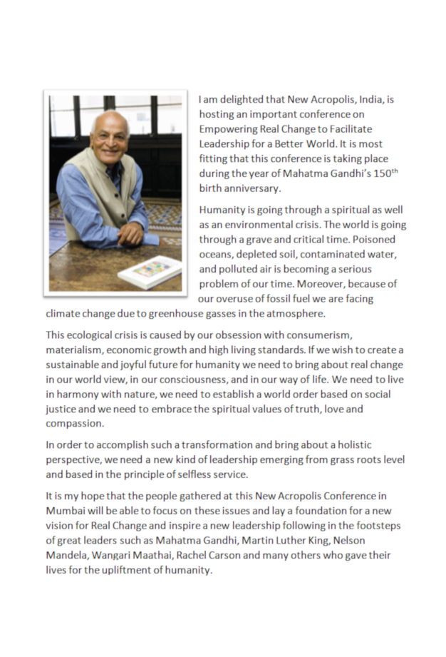 Message of Support from Shri. T R N Prabhu, President of Sevagram Ashram Pratishthan for our event Empowering Real Change – Leadership for a Better World