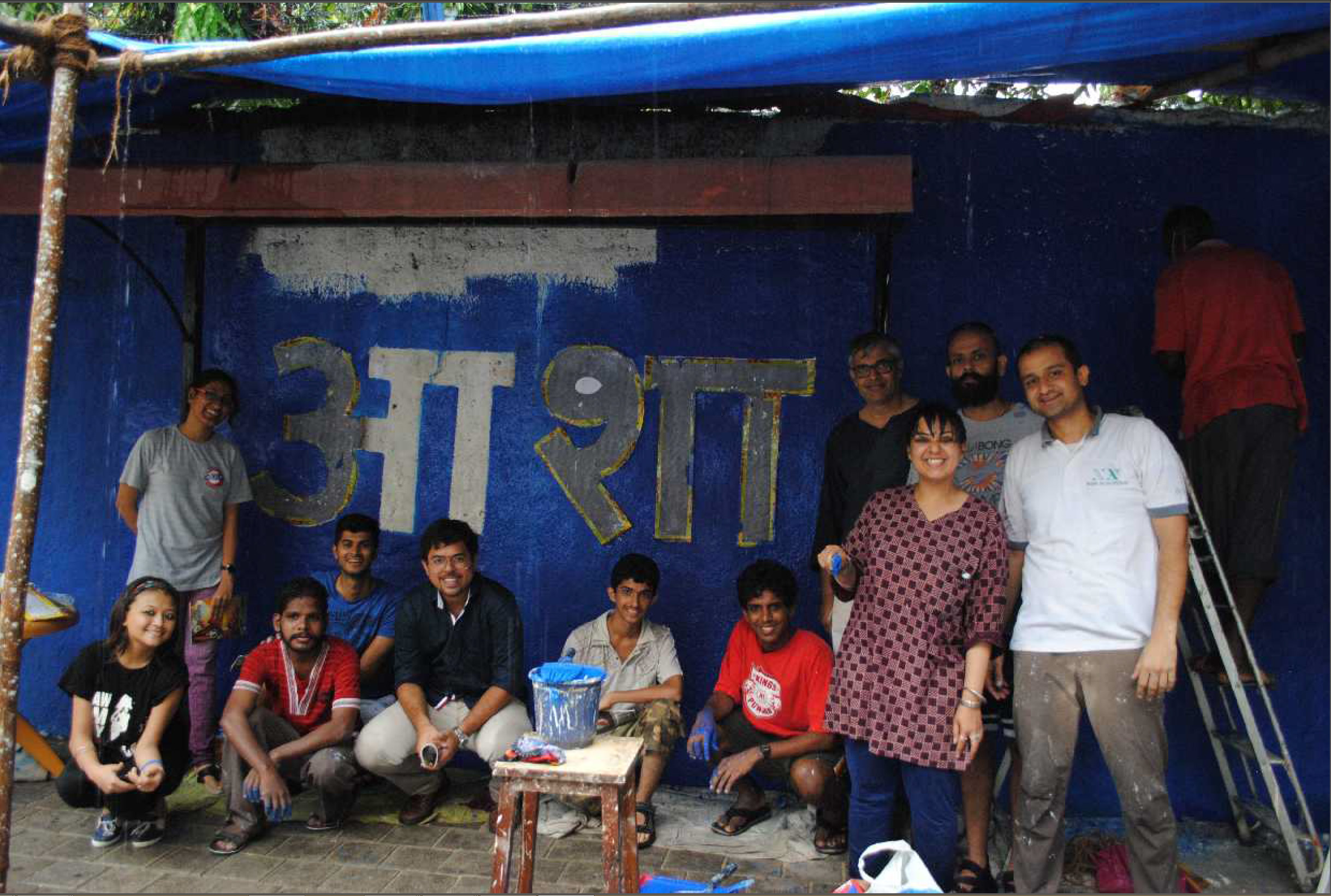 The event began at 8:30am on Sunday morning, where despite the heavy rains, enthusiastic volunteers scraped, primed, leveled and painted the wall by the evening. Several passers-by and residents of the neighborhood also joined in the efforts of bringing more color and beauty to the streets of Mumbai.