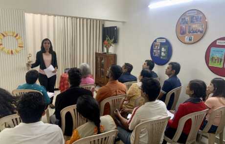 Led by Branch Manager Shraddha Shetty the workshop emphasized the unique ability of the rational mind that distinguishes humans from other living beings by their pursuit of meaning beyond basic desires and instincts. Drawing from the wisdom of Professor N. Sri Ram, she conveyed that true happiness lies in the fullness of life, lived with purpose and glory that transcends self-interest.